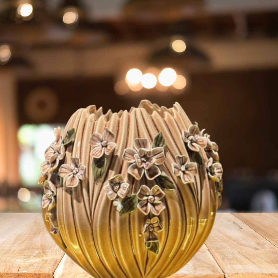 This exquisite set of ceramic vases is a stunning addition to any home. The intricate floral detailing and elegant design create a sophisticated and timeless look.