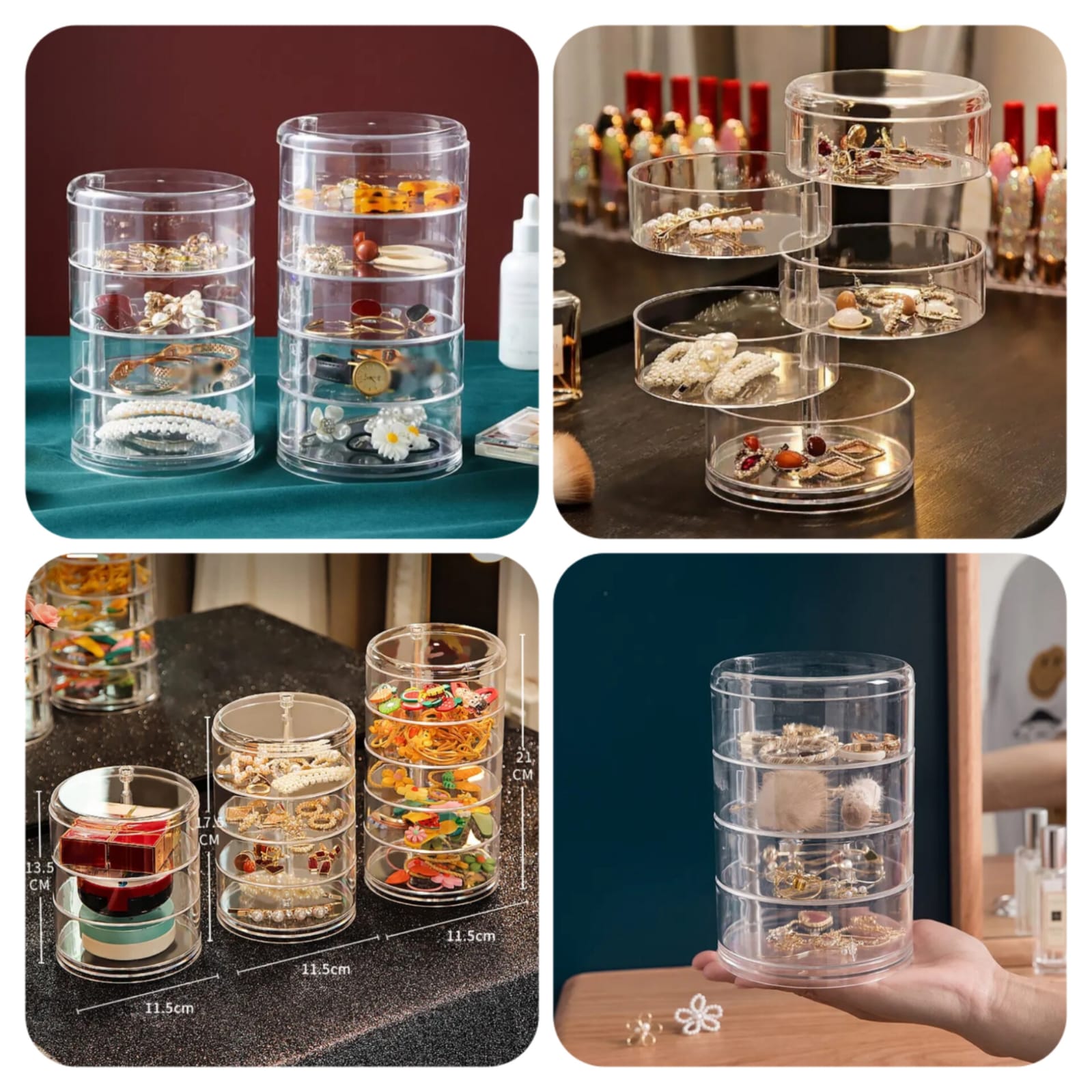This multi-tiered rotating jewelry organizer is a stylish and practical way to store and display your necklaces, bracelets, rings, and earrings. The 360-degree rotation allows for easy access to all your favorite pieces. The clear acrylic construction ensures your jewelry remains visible and dust-free.