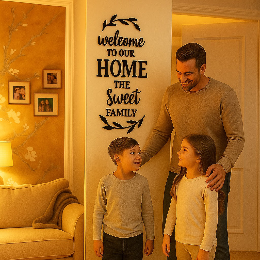Vibrant 'Welcome to Our Sweet Home' Family Wooden Wall Art - 3D Laser Cut Hanging Sign for Heartwarming Home Decor, Living Room, Bedroom, & Entryway - Unique Housewarming Gift for Family & New Homeowners